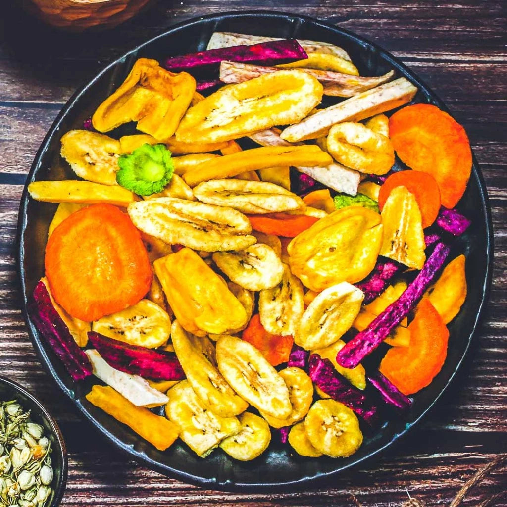 LANGFARM Specialty Dried Mixed Fruits (Thập cẩm sấy giòn đặc sản): Carefully crafted with a selection of premium fruits, including jackfruit, banana, taro, sweet potato, carrot, and bitter melon, these dried fruits offer a crunchy, melt-in-your-mouth experience that's sweet, satisfying, and full of natural goodness.